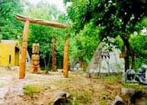 园内分4个区域,游人可在宽阔的河水中划船、戏水,在林中跑马场骑马,在仿古亭下小憩,还可以欣赏到原始宗教萨满教的表演。山坳里,建有模仿陕西西安半坡文化及河南陕庙文化的泥屋群,当夜幕降临时,山上的小屋前板壁上兽头将会发射出神秘的光彩,人们在这里可以领略祖先的生活气息。营区对面一道瀑布飞流直下,山坡下的摸鱼池,叉鱼池旁边有原始人叉鱼、狩猎、钻木取火的场景,有兴致的游客不妨试试身手,捕捉活鱼,其乐无穷。