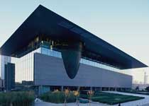 首都博物馆充分体现了“绿色人文”的设计理念,处处绿化景观,时时流水潺潺,与室外天然的园林设计浑然一体,衬托出长安街上这一新世纪标志性建筑的亮丽景观。