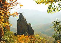 大黑山森林公园位于北票市西北部,与内蒙古自治区敖汉相连,属努鲁尔虎山脉东段南麓。大黑山山峦起伏,奇峰林立,森林茂密,动植物种类繁多,是辽西地区面积最大的一片绿地,被誉为辽蒙边界的绿色明珠。全国政协原副主席、著名科学家卢嘉锡曾为大黑山亲笔题词——辽西绿岛,生命之源。