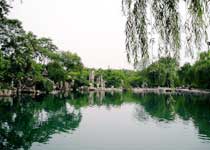 五龙潭公园位于济南旧城西门外,泺源桥北,因内有五龙潭而得名。据《水经注》记载,北魏以前就有这片水,称净池,是大明湖的一隅。相传,五龙潭昔日潭深莫测,每遇大旱,祷雨则应,故元代有好事者在潭边建庙,内塑五方龙神,自此便改称五龙潭。五龙潭内散布着形态各异的26处古名泉,构成济南四大泉群的五龙潭泉群。