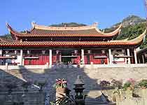 大雄宝殿是涌泉寺的核心。殿中间有三尊释迦牟尼塑像称为“三世佛”,表示过去、现在和未来佛,塑于明朝天启元年。佛像造形细腻,慈眉善目,十分传神,身披唐代服装,金碧辉煌。