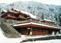 接引殿位于七里坡下,海拔2540米。殿侧,即为上至金顶的客运索道。