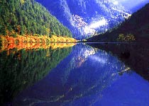 镜海一平如镜,故得其名。它就像是一面镜子,将地上和空中的景物毫不失真地复制到了水里,其倒影独霸九寨沟。镜海海拔2390米,平均水深11米,最深处24.3米,面积19万平方米,素以水面平静著称。每当晨曦初露或朝霞遍染之时,蓝天、白云、远山、近树,尽纳海底,海中景观,线条分明,色泽艳丽。