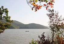 在吉林市的东南24公里处,是在1937年拦截松花江水建丰满水库时形成的大型人工湖。松花湖面积500平方公里,湖形为狭长的一串,周围有南楼山、老爷岭等群山环抱,风致极佳。