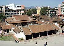 三清殿东面的东岳殿,今仍保存着宋代龙柱,明代梁架结构,梁架上彩绘着道教图案,是南方罕见的古建实物。