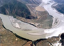在丽江县石鼓镇、距离丽江县城约50公里的地方,奔腾而下的滚滚长江被海罗山崖阻挡,不得不急转一个“V”形大弯,折头向东北流去,这个“V”形大弯就是闻名的万里长江第一湾。