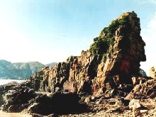 珍珠礁东侧这一爿独立的岩礁,耸起在海滩上,高约8米,看那形状,就像土地公,土地公在珍珠礁上晒过金银,他喜欢这儿的美景,就把自己的化身留下来了。