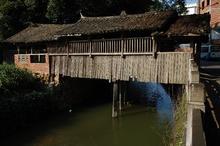 木平廊桥,位于三魁镇下武洋村。桥长15.1米,宽4.47米,跨径10.1米。顾名思义,三柱桥是因溪中立有三根石柱承托桥底梁木而得名。在梁木下顶以石柱,可以增加梁木的受力能力。