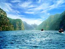 提示:游览小浪底,可以由山西、河南两侧进入景区。小浪底库区总面积278平方公里,涉及山西的垣曲、夏县、平陆三个县,其中,垣曲县正位于水库回水区中段,水域面积占到库区总面积的60%。