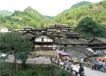 造型玲珑剔透的木屋掩映在青山绿水中,古朴自然。依山而建的民居,错落有致,和谐统一。村中小桥流水人家,炊烟袅袅,白云时而缭绕,让人不知身处何处。