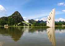 杨堤是欣赏漓江烟雨的最好地方,漓江烟雨是漓江风景一绝。雨中的杨堤,周围的一切全都变得朦朦胧胧、如情似梦。浪石村旁的河中有一片礁石,似起伏的波浪,因而得名。乘船过浪石,两岸奇峰一座连着一座,排成一个峡谷。每当烟雨季节,这一带风光云雾缭绕,景色变幻莫测,显得十分神奇。江中有两个沙洲像鸳鸯戏水,名鸳鸯滩,滩下有锣鼓石。杨堤两岸翠竹成林,连成十里的绿色翠屏,摇曳在青山、秀水、飞瀑、浅滩之间,给人以清幽、宁静、详和、致远之感。枯水期间,杨堤是江游的起点,万头攒动,热气腾腾,静与动奇妙地融汇在一起。在漓江西岸的鸳鸯滩下。杨堤村后有一山,它的两个山峰,如一倒桂的“羊从冠岩到杨堤五公里之蹄”,人们借它的谐音称这 ... 查看详情