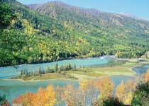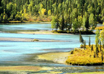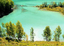 喀纳斯河是布尔津河的主要支流,河的上源就是喀纳斯湖。湖水倾泻而下,在山谷中蜿蜒,形成了卧龙湾、月亮湾等秀丽绝伦的水湾河滩。喀纳斯湖南端出水口以下到鸭泽湖的河段巨石密布,水流湍急,浪花四溅;鸭泽湖到卧龙湾河段,则河面宽阔,水流缓慢,河滩上绿草如茵,两岸林木葱郁。如音乐般张弛有致的节奏使这里成为漂流的最佳河段。漂流的费用200元。 查看详情