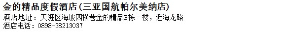 Address:Haipo sihengxiang gold Boutique Building B, first floor, inshore dragon road, Tianya District, Sanya