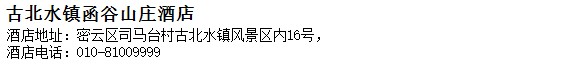 Address:No.16, gubeishui town scenic area, Simatai village,, Miyun District, Beijing