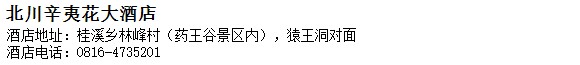 Address:Linfeng village, Guixi township (in Yaowang Valley Scenic Area), opposite to ape King cave, Beichuan-county