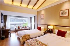 здесь в общей сложности 2500 квадратных метров строительного пространства, стена фона вестибюля с природным каменным слоем 9 этажей, бар стола 296cm, пешеходные стены 6 этажей, все для традиционной китайской архитектурной культуры благоприятное число;четыре и более уникальных номеров, все с различными стилями интерьера, чтобы достичь различных возрастов и вкус жизни видения гостей.