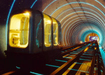 Escalators are installed at its entrances and exits, and hydraulic pressure lifts are especially designed for the handicapped. The highly advanced automatic non-driver traction compartments will be used to carry passengers and it takes about 2.5 to 5 minutes for this modern clean and light vehicle to run from Puxi to Pudong. Its maximum capacity is 5280 persons per hour. Modern high technologies will be applied in the decoration of the tunnel, providing the passengers with background music as well as pictures, patterns and views about people, history, culture, science and technology and natural scenery. Tourists will be deeply impressed by the visual and audio enjoyment, fun and excitement while passing through the tunnel.